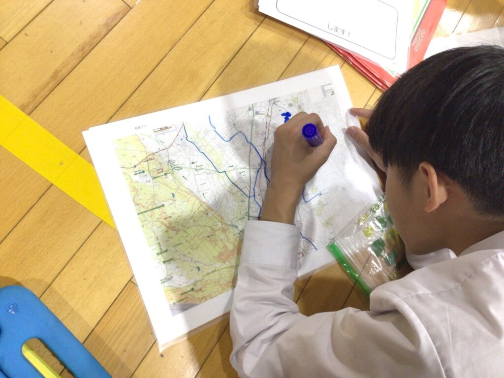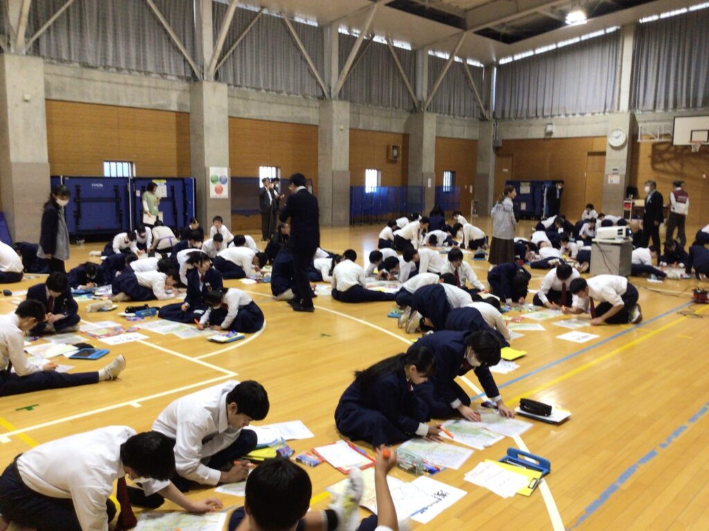 10月17日(金)2年生防災マップ作成授業。横手市教育委員会の方、防災士の方が来校し、自宅周辺と学校までの危険箇所を考えて、防災マップを考えました。