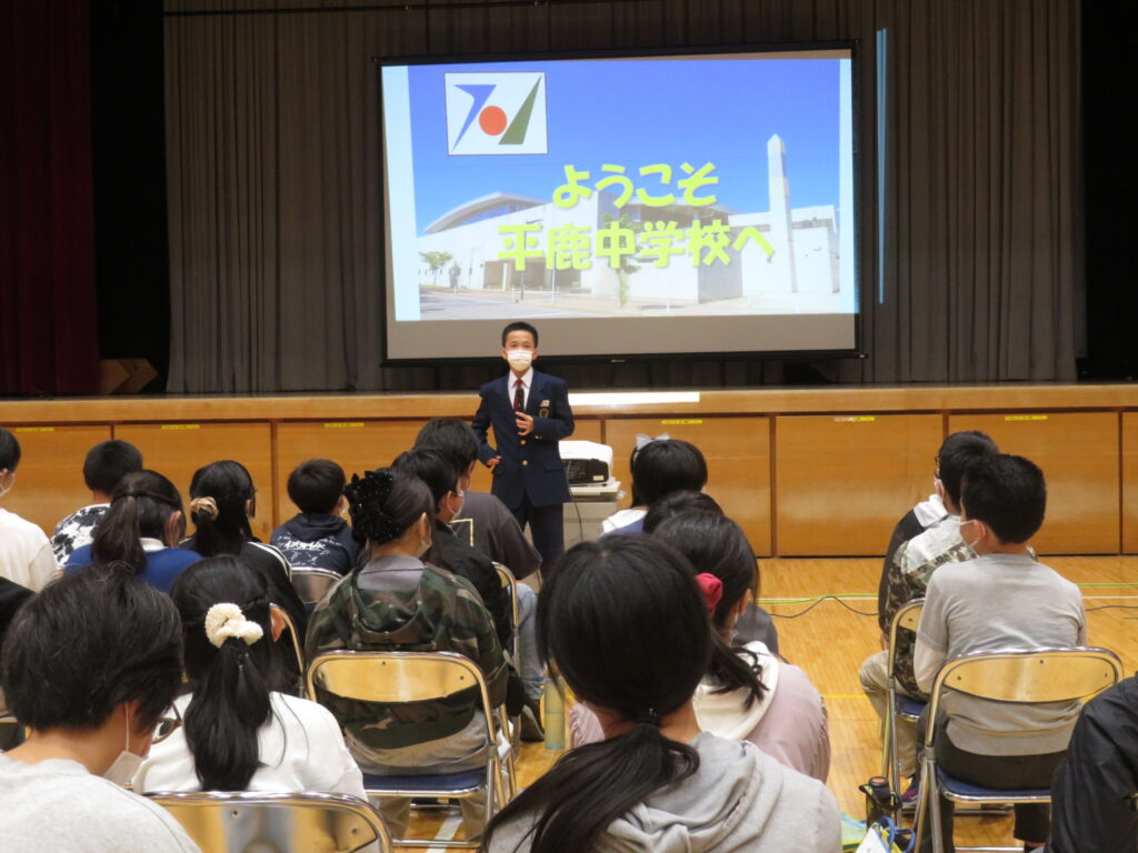 10月23日(木)平鹿中オープンスクール。来年度入学予定の3小学校(浅舞、吉田、醍醐)の6年生が平鹿中学校に来て、平鹿中学校についての説明を聞いたり、中学生の授業の様子や部活動の様子を参観したりしました!1年生の実行委員が中心となって行いました。