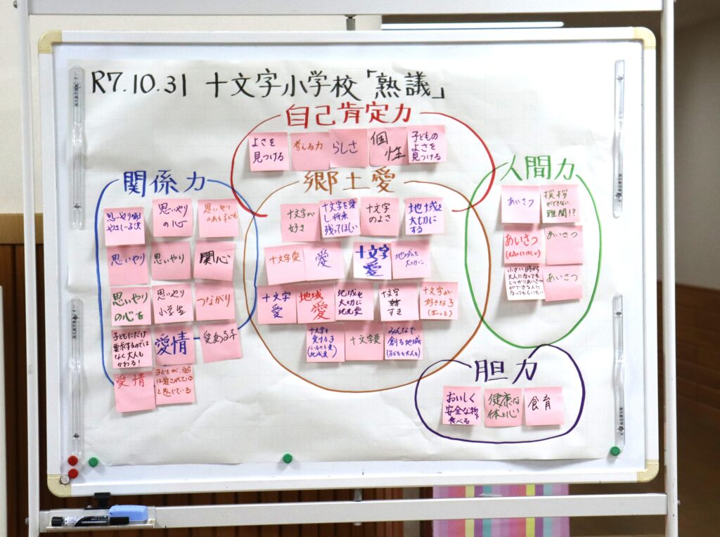 「十文字の子どもたちに、どのように育ってほしいか」をテーマに話し合い、
