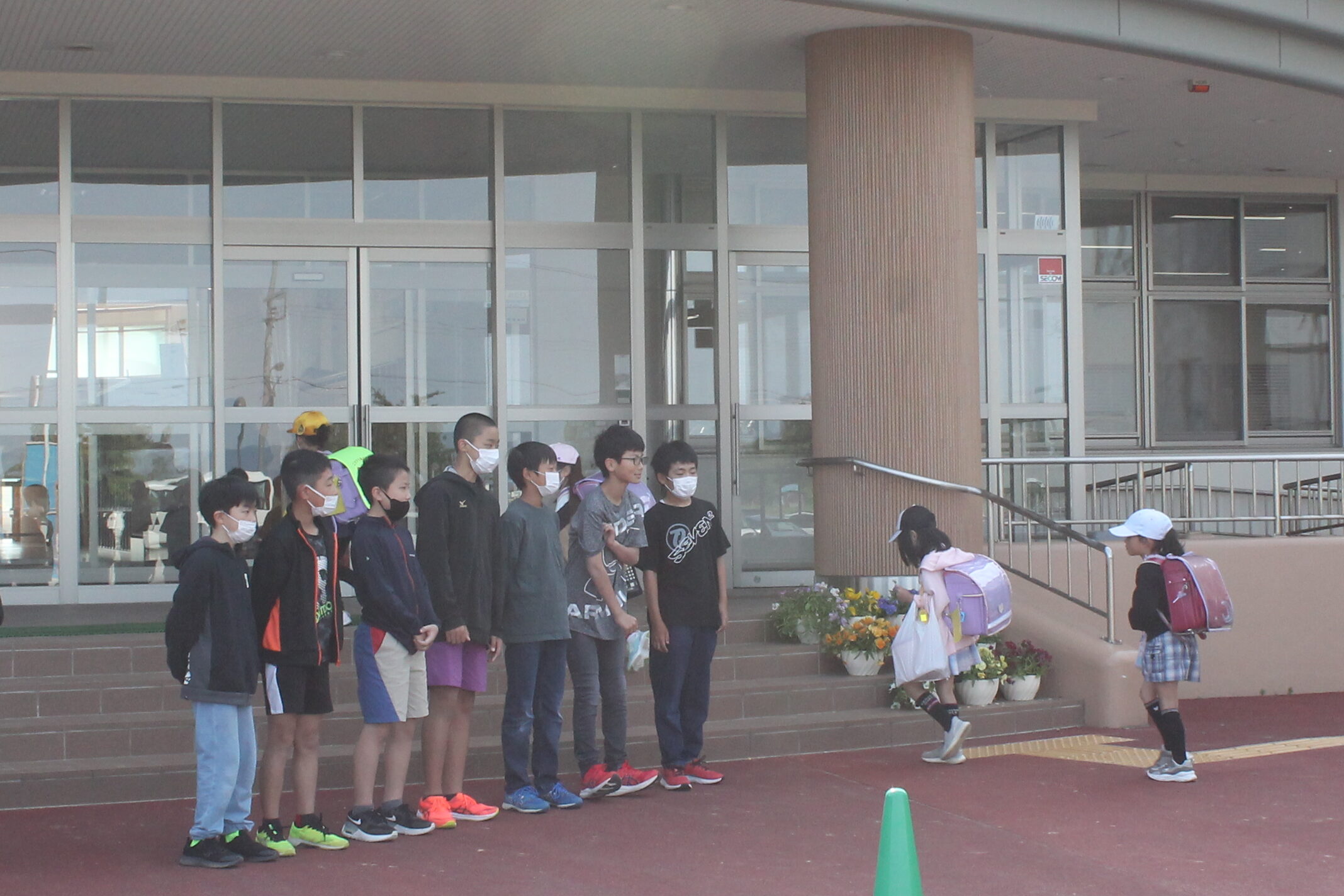 毎週木曜日に校門と玄関前であいさつ運動をしています。