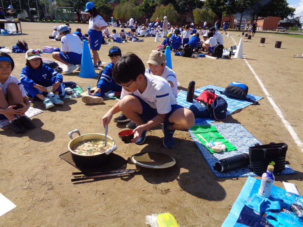 なべっこはコロナ禍で中止になっていたため、ほとんどの児童が初体験という状態での開催でしたが、5,6年生は自然体験学習等の体験を生かし、上手に芋の子汁を作ってくれていました。