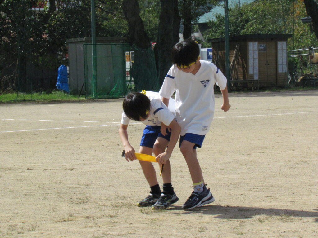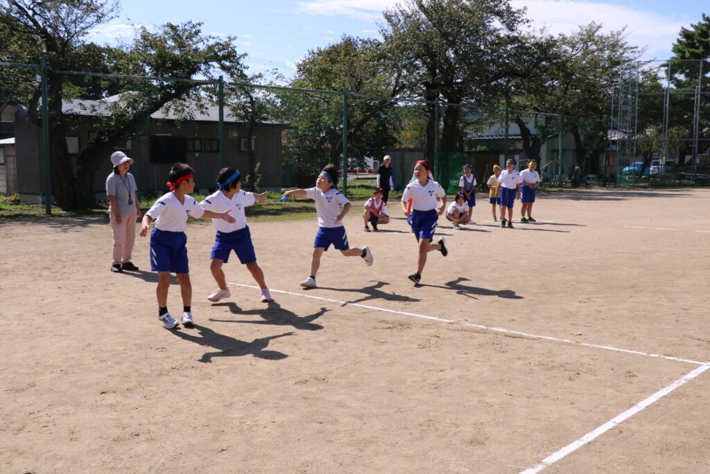 そして当日、熱のこもった応援合戦をはじめ、80m・100m走、色別全員リレー、遊走(1・2年生「わくわくダンシング玉入れ」、3・4年生「あなたとわたしの二人三脚」、5・6年生「笑顔いっぱい借り物競走」)それぞれに全力で臨んだ子どもたちでした。閉会式後はこれまで色組をリードしてくれた6年生を囲んで、感謝を伝えたり、当日までの頑張りをみんなで称え合ったりして、閉会することができました。