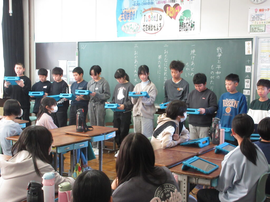 12月10日(水)、冬休み前の全校PTAが行われました。それぞれの授業からは、4月からこれまでの学びの積み重ねや、一人一人の成長した姿が感じられたのではないでしょうか。友達と協力する姿、自分の考えを伝えようとする姿、堂々と発表する姿など、子どもたちの頼もしい一面を見ることができました。