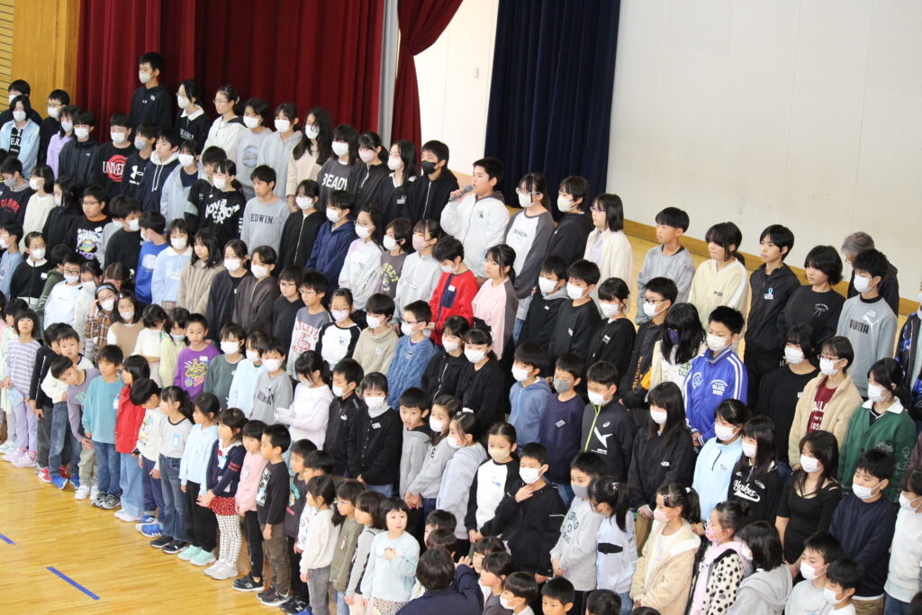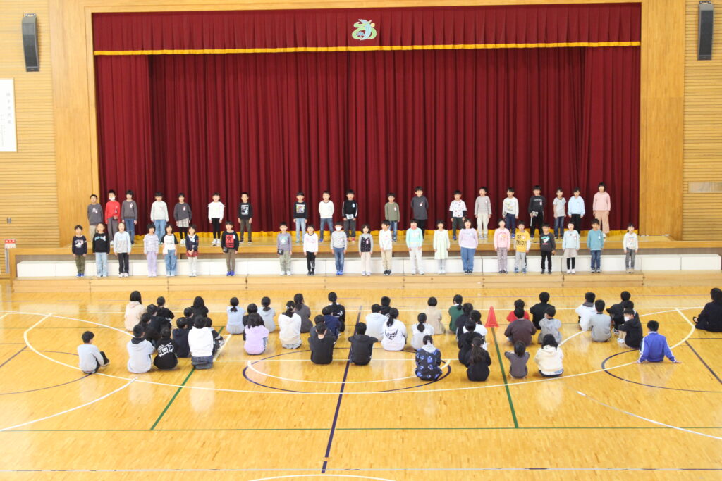 学習発表会の予行をしました。風邪症状の児童もいるため、「全校で観る」という予定を変更して、「1学年だけ観る」ことにしました。
