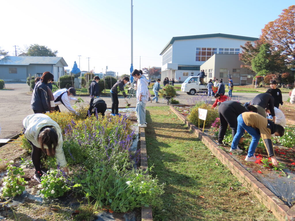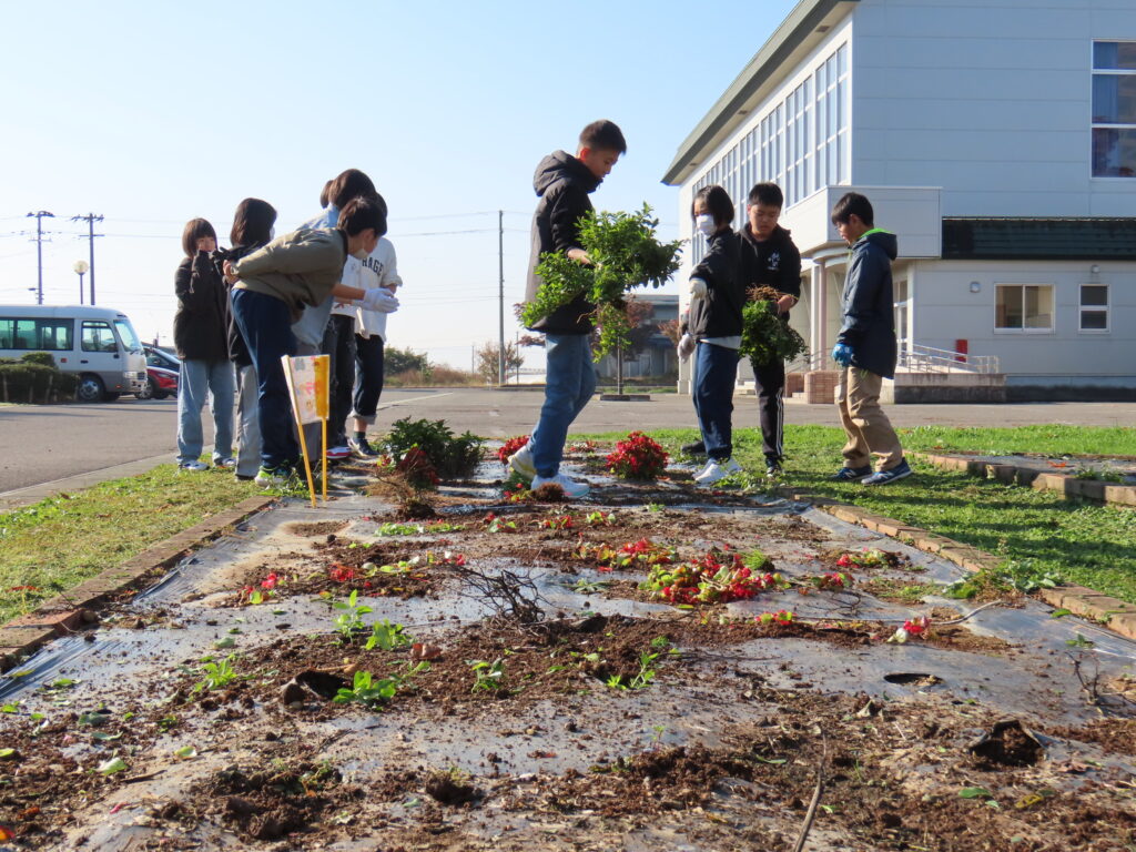 1校時目に5、6年生が花壇の片付けを行いました。春に苗を植え、お世話をしてきた花壇の花を各色組で手分けをして片付けました。大きく育った花たちに苦戦しながらも、協力して花壇をきれいにすることができました!