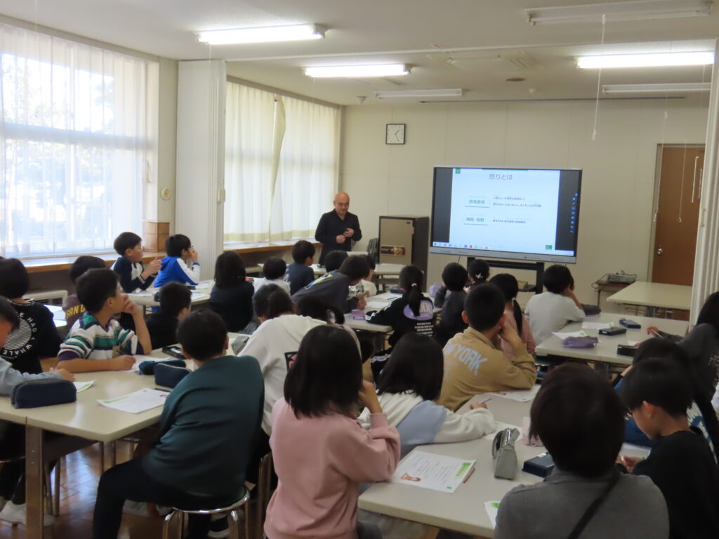 5校時目には3、4年生がアンガーマネジメント教室を行いました。講師の先生をお招きし、怒りのコントロールの仕方や相手への伝え方について学びました。今回学んだ相手を傷つけない伝え方などを、これからの生活で実践していきましょう。